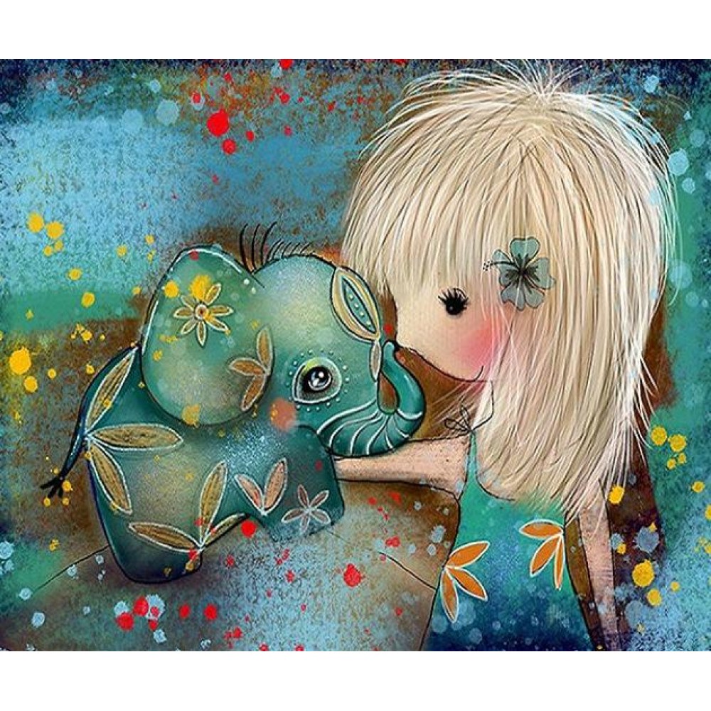 Cute Cartoon Elephant And Girl 5D Diy Diamond Painting
